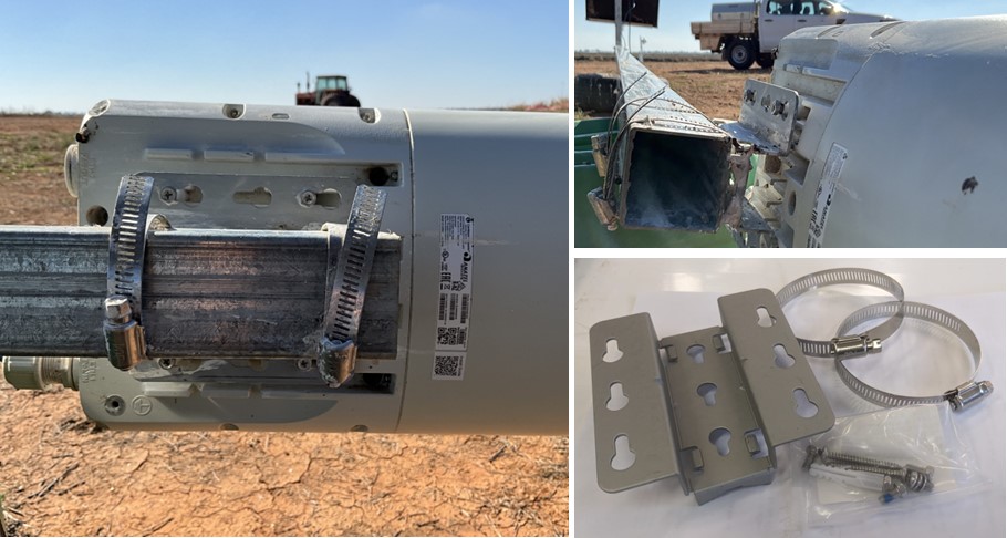 Step 3: Attach the Wi-Fi radio in the edge of the metallic pole. Use the brackets included in the device to attach it.