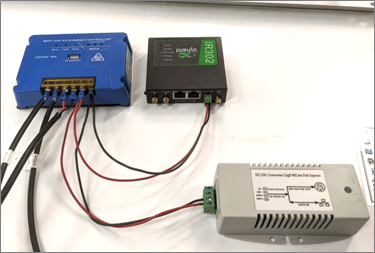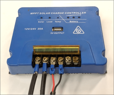 Step 7: Connect the PoE injector and the 4G router to the load connectors on the solar regulator.